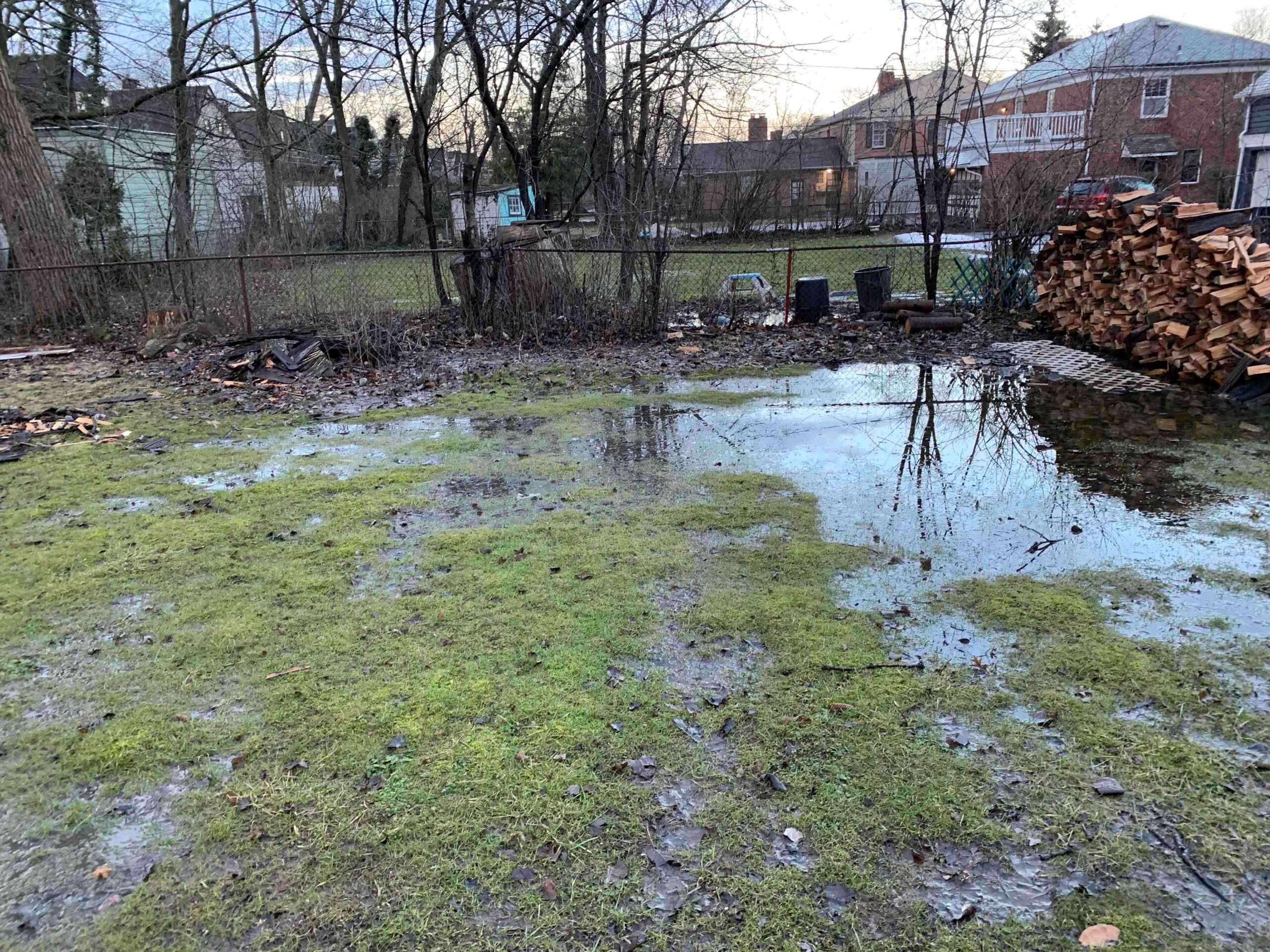 A gray cat slinks past a wooden house. There’s something a little intimidating attempting to describe.